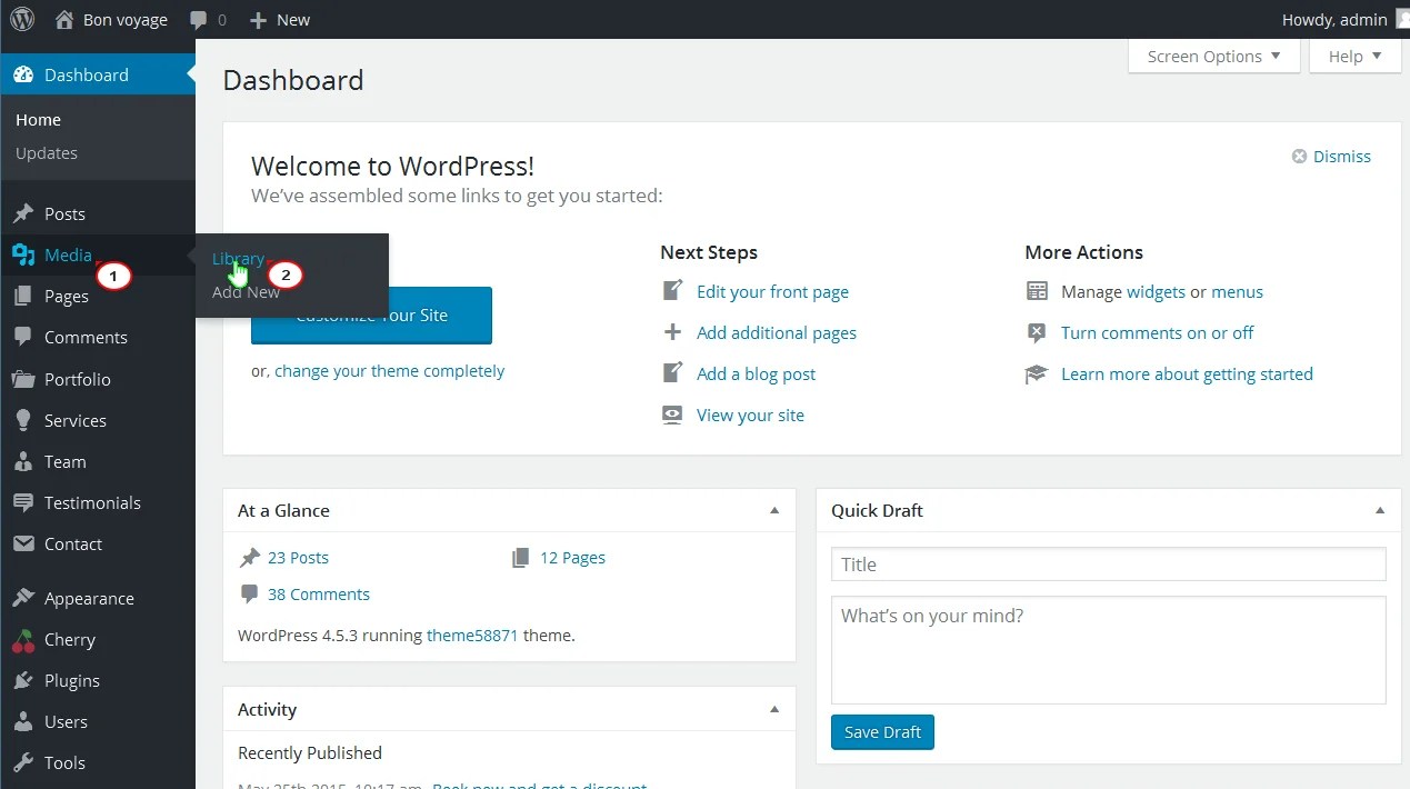 1. Log into the WordPress admin panel, navigate to Media click on Library.