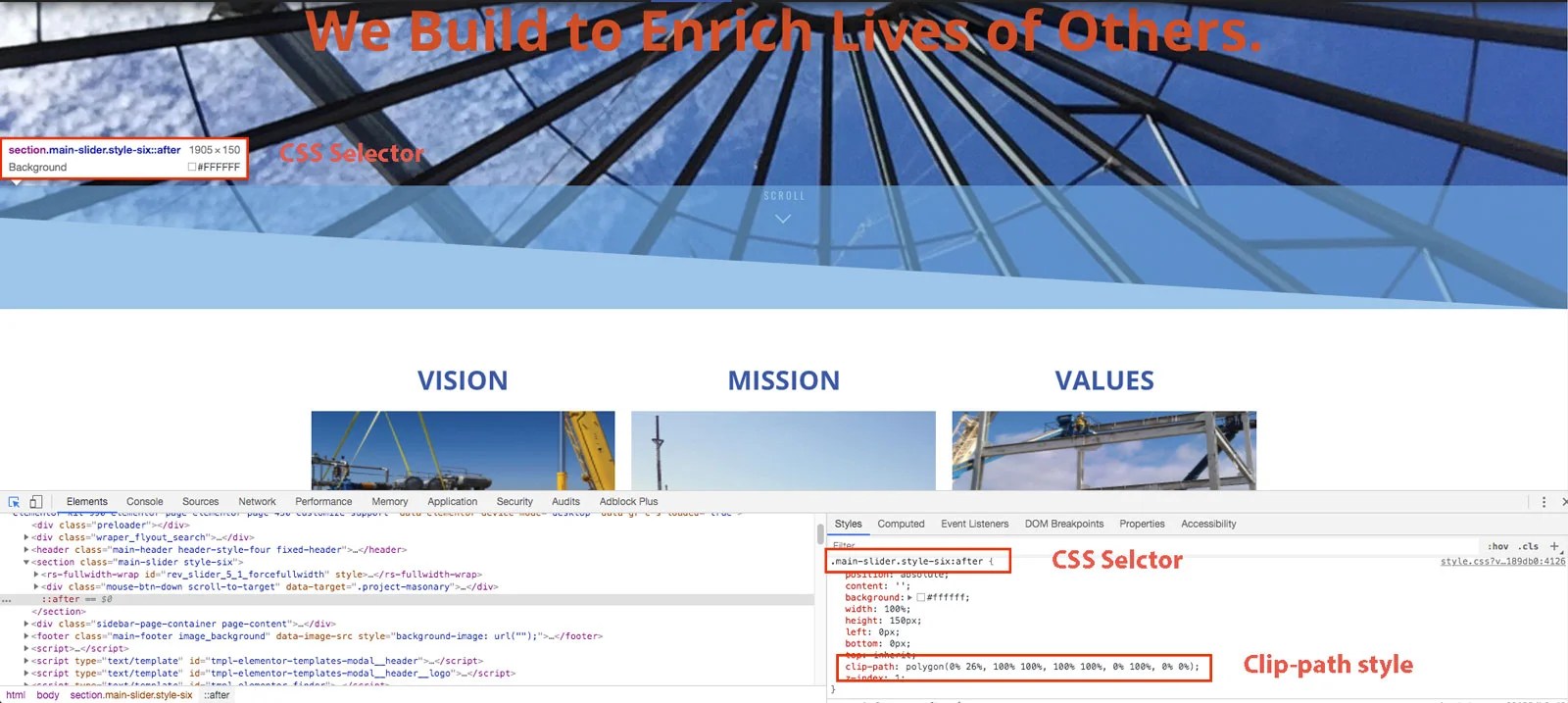 Copy the existing clip-path property. we’ll add a prefix of -webkit- to the clip-path property.